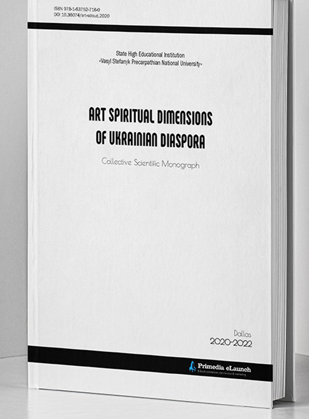 Karas H. Paraliturgical works as a sacred-aesthetic element of Ukainian musical culture. Art Spiritual dimensions of Ukrainian diaspora: collective scientific monograph (Dutchak V., Karas’ H., Dundiak I.,, Kozinchuk V., Kukuruza N., Novosiadla I., Fabryka-Protska O., Duda L., Fedorniak N., Obukh L., Kurbanova L., Sloniovska O.). Dallas, USA: Primedia eLaunch LLC, 2020. P. 35-71.